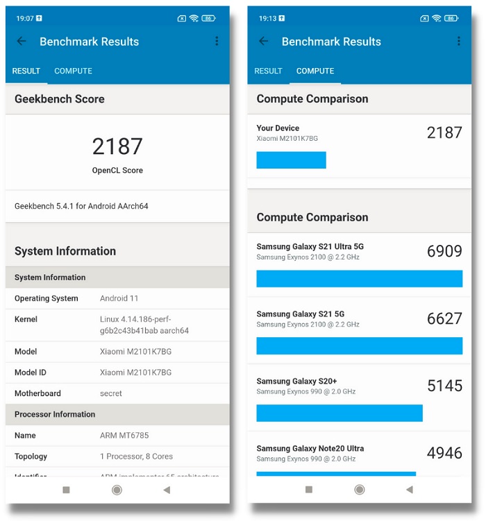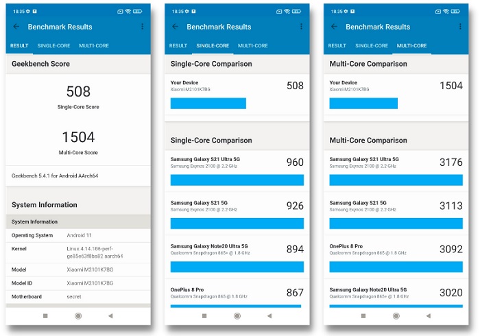 Từ kết quả trên có thể đánh giá hiệu năng Xiaomi Redmi Note 10S là không hề thấp. Kết quả chấm điểm qua PCMark của Redmi Note 10 Pro đạt 8.704 điểm và chỉ cao hơn chip Helio G95 trên Redmi Note 10S một chút. Và mình không thể so sánh kết quả khi chấm điểm qua GeekBench 5 vì Note 10 Pro không cho chạy phần mềm này.