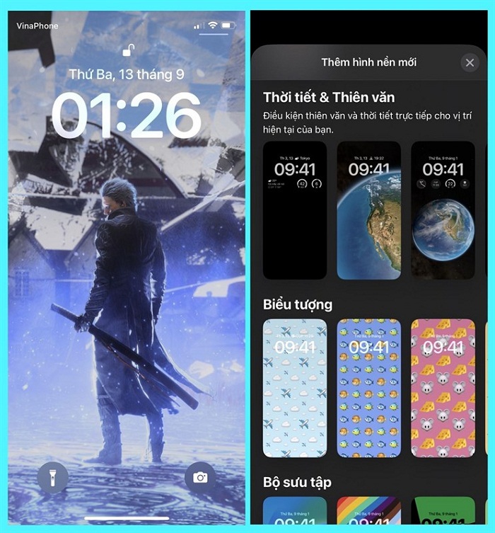 Ngoài ra, iOS 16 còn sở hữu điểm nhấn rất độc đáo là tính năng cho phép bạn có thể tùy biến màn hình khóa theo nhiều phong cách khác nhau tùy sở thích của mình bằng cách nhấn giữ vào màn hình khóa.