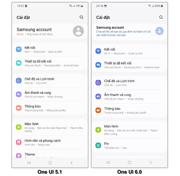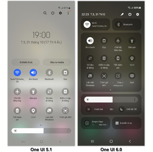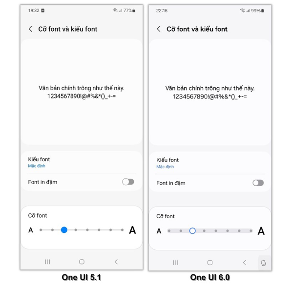Trong quá trình trải nghiệm, mình nhận ra kiểu font trên One UI 6.0 đã có sự nâng cấp đáng kể. Các bạn có thể xem ảnh so sánh bên dưới đây, kiểu font trên phiên bản One UI 6.0 mới nhất được làm béo hơn thay vì thanh mảnh trên One UI 5.1 trước đó, tạo cảm giác trông hiện đại và dễ quan sát hơn.