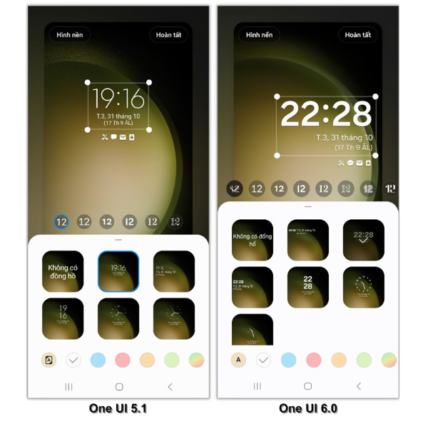 Phần tùy chỉnh màn hình khóa trên phiên bản One UI 6.0 có sự thay đổi nhẹ khi lấy cảm hứng từ giao diện màn hình khóa trên nền tảng Android 14. Chúng ta có thể điều chỉnh kích thước và thậm chí là vị trí của đồng hồ trên giao diện này.