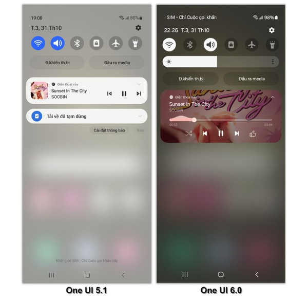 One UI 6.0 có một số nâng cấp ở trình phát nhạc so với phiên bản trước đó là hiệu ứng phát nhạc. Cụ thể là hiệu ứng Wave rất bắt mắt mỗi khi chúng ta nghe nhạc, xem video dưới nền,… Mặc dù sự thay đổi này không quá lớn nhưng nó vẫn tạo một điểm nhấn thú vị, giúp người dùng có trải nghiệm sử dụng tốt hơn với chiếc điện thoại Galaxy.