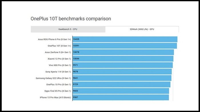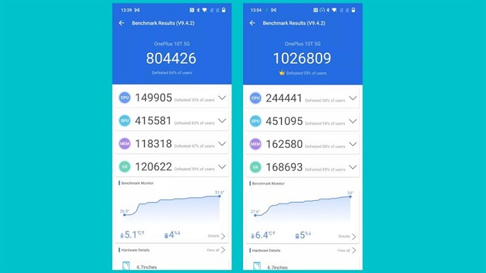 Ngoài ra, khi chấm điểm hiệu năng của OnePlus 10T thông qua app 3DMark, GeekBench 5 và AnTuTu, kết quả được cụ thể như sau: