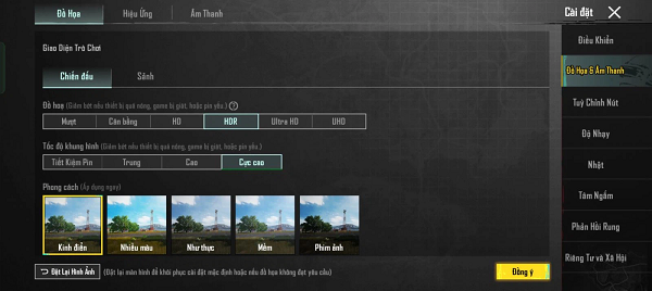 Với game PUBG Mobile, người dùng cũng có thể tùy chỉnh ở mức độ HDR ở khung hình Cực cao và Mượt ở Cực độ mà Reno10 5G vẫn thể hiện chất lượng hình ảnh tốt cùng các thao tác chạy bo, nhảy dù ổn định.