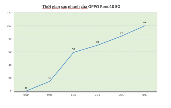 Như vậy, bạn có thể trải nghiệm Reno10 5G tới 9 tiếng với viên pin 5.000mAh nên bạn hoàn toàn yên tâm sử dụng trong cả ngày dài mà không lo bị gián đoạn.