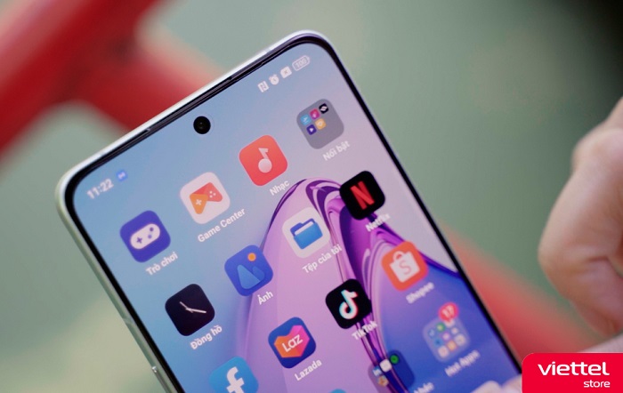 Mặt trước của OPPO Reno8 Pro là màn hình có thiết kế đục lỗ, là nơi chứa camera selfie quen thuộc và được đặt ngay trung tâm của phía trên màn hình, giúp mang đến một sự cân bằng khi nhìn vào tổng thể thiết bị. Ngoài ra, viền màn hình cũng được trau chuốt theo xu hướng mỏng manh hơn khiến thiết bị trông gọn gàng và hài hòa hơn dù sở hữu diện tích hiển thị khá lớn.
