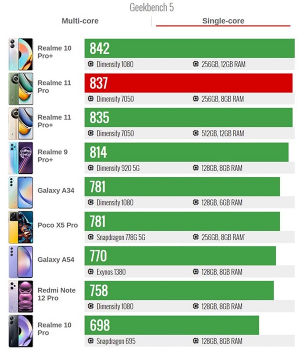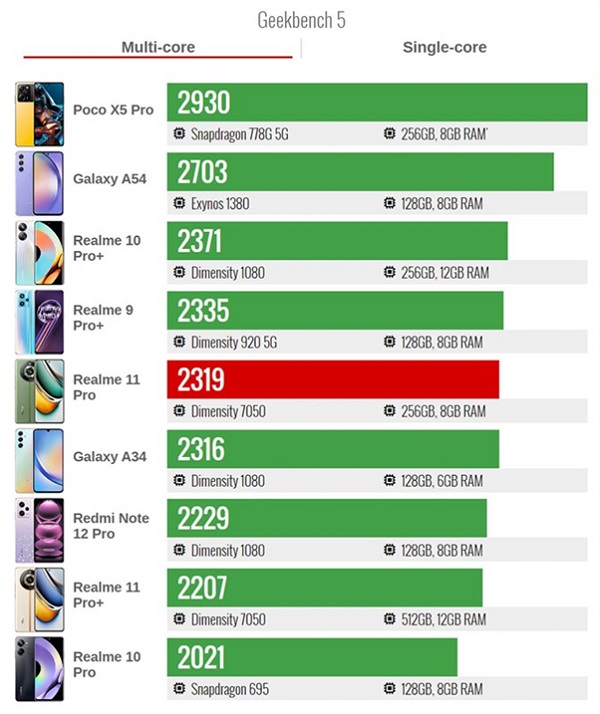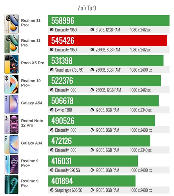 Trong bài kiểm tra hiệu năng realme 11 Pro từ phần mềm, kết quả thu được tốt hơn rất nhiều so với các đối thủ trong cùng phân khúc dù chưa quá xuất sắc. Điều này cũng dễ hiểu bởi realme 11 Pro chỉ là smartphone tầm trung.