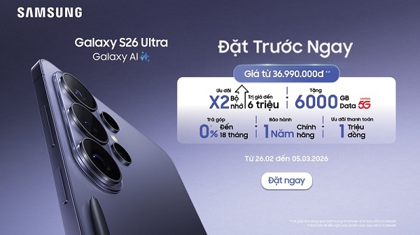 Ngay sau khi ra mắt, Viettel Store chính thức mở chương trình đặt trước các siêu phẩm thuộc dòng Galaxy S26 với rất nhiều siêu ưu đãi giảm đến 6.000.000 đồng, nhận miễn phí 6000GB data 5G tốc độ cao/ năm và còn nhiều hơn thế nữa!!!