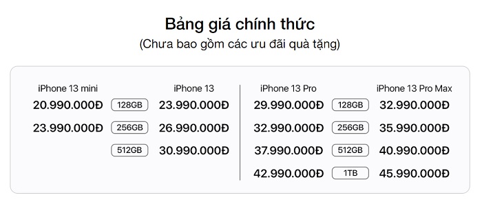 Giá bán dòng sản phẩm iPhone 13 chính hãng tại Viettel Store