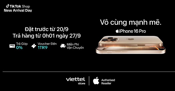 Sau buổi công bố ra mắt siêu phẩm gây bão toàn cầu, từ 0h01 – 20/09/2024 bạn đã có thể đặt trước dòng sản phẩm iPhone 16. Đặc biệt, hãy cùng Viettel Store trải nghiệm lần đầu tiên mua Online tại Tiktok Shop – Nhận Offline tại siêu thị Viettel Store cùng ưu đãi hấp dẫn độc quyền. Xem chi tiết ngay!!!