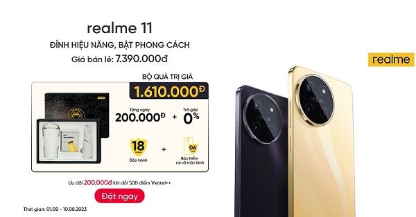 Từ nay đến 10/08, Viettel Store chính thức mở đặt hàng bộ đôi “đỉnh hiệu năng, bật phong cách” realme 11 4G và realme 11 Pro 5G. Trong thời gian áp dụng chương trình, khi đặt trước hai điện thoại này, bạn sẽ nhận được bộ quà tặng cùng nhiều ưu đãi hấp dẫn.