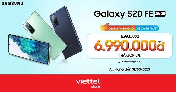Khi mới lên kệ tại thị trường Việt Nam năm 2020, mẫu smartphone thuộc phân khúc tầm trung Samsung Galaxy S20 FE có giá bán khởi điểm lên tới 16 triệu đồng. Sau 3 năm, giá bán sản phẩm đã giảm sâu và tốt hơn rất nhiều. Đặc biệt, khách hàng mua Galaxy S20 FE tại Viettel Store kèm gói cước V120S thì giá chỉ còn 6.990.000 đồng. Có thể nói đây là mức giá “sập sàn” trong phân khúc, nhất là khi thiết bị còn sở hữu hàng loạt tính năng và công nghệ nổi bật.