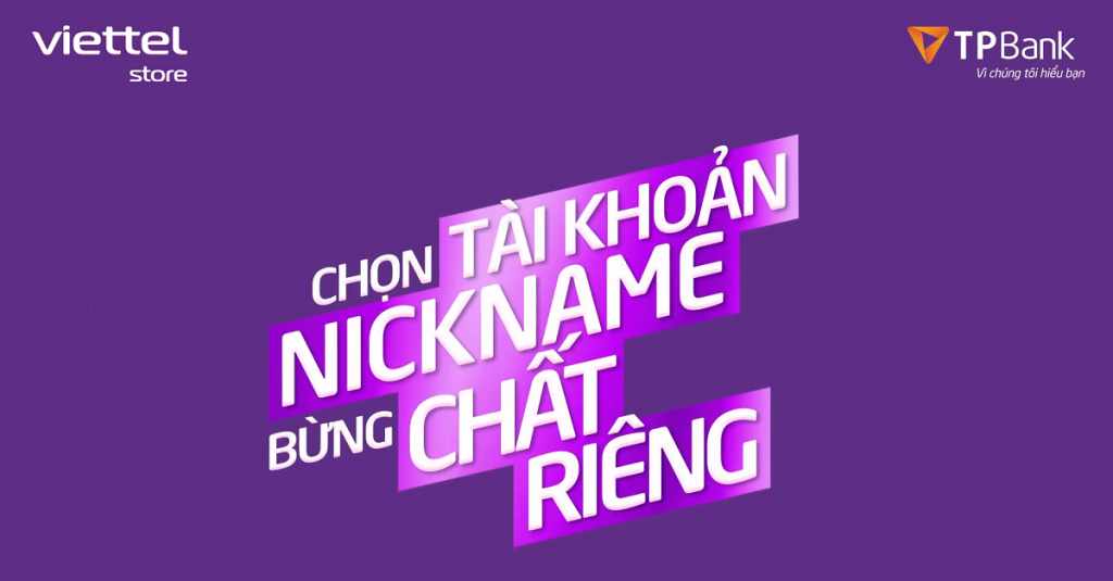 Bạn muốn tự do sáng tạo tài khoản với nickname hay bất cứ cái tên yêu thích nào và dùng chính nó để thực hiện các giao dịch ngân hàng? Còn chờ gì nữa, hãy đến ngay Viettelstore đăng ký tài khoản TPBANK. Vậy là, thay vì dãy số khô khan thì giờ đây bạn đã có nickname cực chất, cực ngầu lại chẳng cần phải cố gắng ghi nhớ hay tìm kiếm mỗi khi cần cho số tài khoản để ai đó chuyển tiền cho mình rồi.