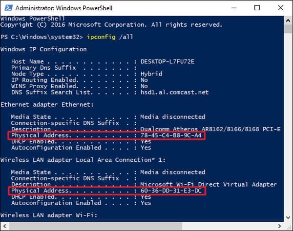 Địa chỉ MAC cùng một số thông tin về hệ thống mạng của người dùng sẽ được hiện ra. Địa chỉ MAC sẽ xuất hiện ở mục Physical address.