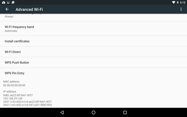 Địa chỉ MAC trên Android, máy tính bảng Android