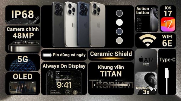 iPhone 15 Pro là mẫu điện thoại thế hệ mới nhất của Apple. Máy được trang bị màn hình mới Dynamic Island 6.1inch cùng công nghệ ProMotion và Always On Display. Thiết bị cũng có nhiều thay đổi trong thiết kế đáng giá với khung viền titan sang trọng. Về hiệu năng máy tích hợp con chip Apple A17 Pro mới nhất mang lại hiệu năng vượt trội, giúp người dùng tự tin trải nghiệm mọi phần mềm di động yêu cầu sức mạnh cấu hình.
