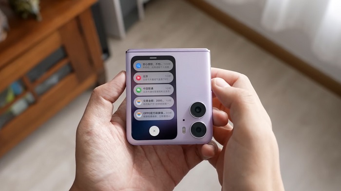 Ngoài kích thước lớn, màn hình của Find N2 Flip còn hiển thị được rất nhiều nội dung như: thông báo, thời tiết, nhắn tin, nhận cuộc gọi, chơi game,… Thậm chí người dùng còn có thể thay đổi hình nền cho màn hình này và biến nó thành màn hình xem trước khi chụp ảnh selfie từ camera sau.