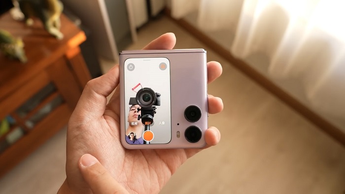 Ngoài ra, điểm nổi bật trên OPPO Find N2 Flip còn nằm cụm camera chính và màn hình siêu rộng 3.26 inch ở mặt ngoài.