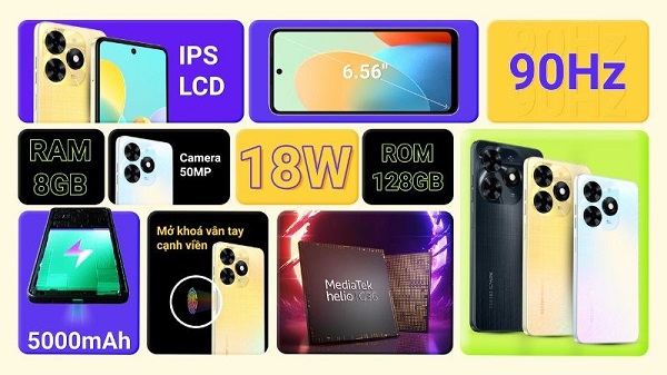 Tecno Spark 20C cũng là một trong những lựa chọn tuyệt vời trong phân khúc điện thoại 128GB giá rẻ dưới 3 triệu đồng, nổi bật với camera chính có độ phân giải 50MP, chụp ảnh vô cùng rõ nét và chi tiết ngay cả trong điều kiện thiếu ánh sáng. Màn hình kích thước 6.56 inch HD+ đã mang lại một trải nghiệm xem sống động.