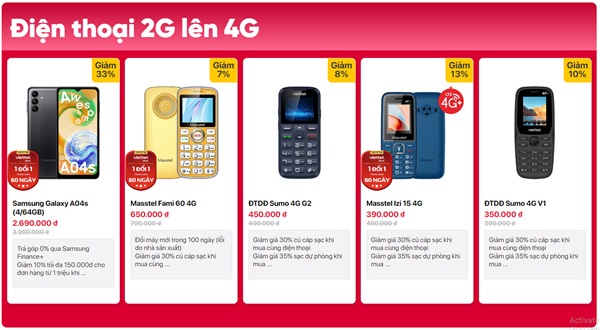 Điện thoại 2G lên 4G giá siêu rẻ tại Viettel Store