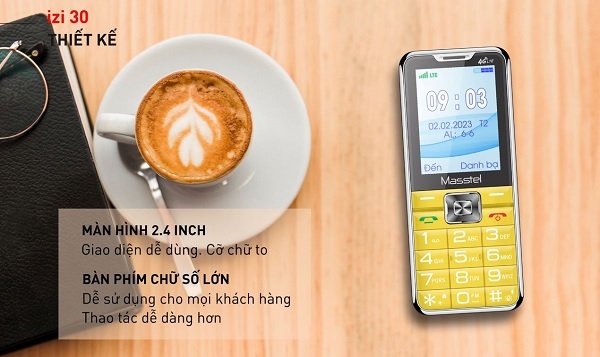 Masstel Izi 30 4G sở hữu phong cách thiết kế khá quen thuộc với kiểu pin tháo rời cùng chất liệu nhựa bền bỉ, vừa giúp bảo vệ được điện thoại, vừa giúp giảm trọng lượng cho chỉ còn 100g. Đồng thời, với kích thước 117.5 x 49.7 x 16.5mm của sản phẩm cũng rất nhỏ gọn sử dụng chỉ với 1 tay thuận tiện. Màn hình của điện thoại tuy không quá rộng nhưng phần phông chữ được làm to sẽ rất dễ quan sát và sử dụng.