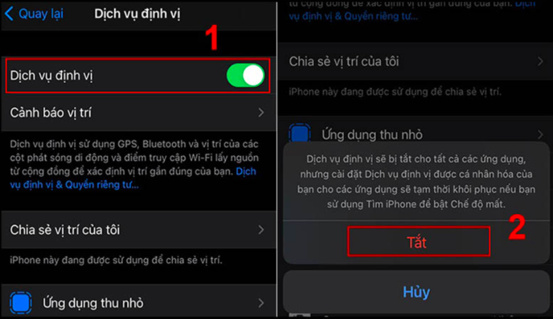 Bước 2: Trong phần Dịch vụ định vị, bạn gạt thanh trượt phía cuối sang bên trái hiển thị màu xám để Tắt tính năng này. Bạn nhấn xác nhận Tắt một lần nữa để hoàn tất thao tác.