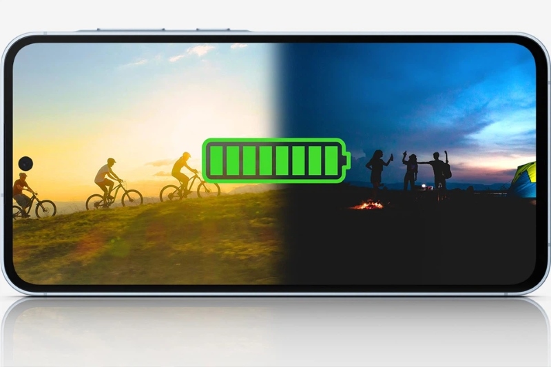 Samsung Galaxy A55 với viên pin dung lượng lớn lên đến 5.000 mAh và đi kèm công nghệ sạc nhanh 25W đảm bảo thời gian sử dụng bền bỉ tới hơn 1 ngày mà không cần sạc thường xuyên. Công suất sạc pin nhanh cũng giúp người dùng nạp đầy năng lượng nhanh chóng, tránh gián đoạn thời gian sử dụng thiết bị.