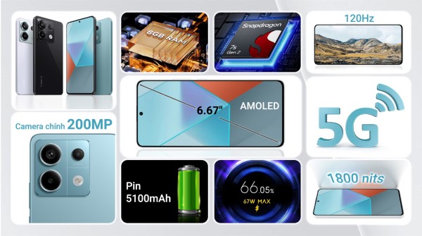 Điện thoại sở hữu hệ thống camera chính lên tới 200MP, camera góc siêu rộng 8MP và camera chụp cận 2MP, cùng camera selfie 16MP. Hiệu năng của Note 13 Pro đến từ SOC Snapdragon 7s Gen 2 của Qualcomm. Chipset này được đánh giá là có hiệu suất cao và ổn định vượt trội so với các sản phẩm thuộc phân khúc cùng tầm giá.
