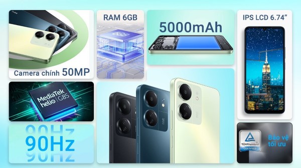 Xiaomi Redmi 13C là dòng điện thoại Xiaomi thế hệ mới được tích hợp nhiều cải tiến hiện đại, và thiết kế sang trọng. Dù chỉ nằm trong phân khúc giá tầm trung nhưng hãng vẫn đảm bảo cho thiết bị này hiệu năng đa nhiệm ổn định với sức mạnh từ con chip MediaTek Helio G85. Bên cạnh đó, máy cũng được trang bị màn hình IPS LCD độ phân giải HD+ (720 x 1600 pixels) cho khả năng hiển thị nội dung hiển thị rõ ràng, sinh động.