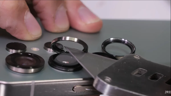 Bên cạnh đó, thiết kế vòng camera của Galaxy S25 Ultra được làm hơi nhô lên, điều này có thể khiến nó dễ dàng bị cạy ra bằng dao và đây sẽ là nơi tích tụ bụi lý tưởng. Ngoài ra, vòng camera của máy cũng khá lỏng lẻo, logo Samsung bị in lỗi, mờ nhạt và bố trí lệch lạc mang đến cho chúng ta sự nghi ngại về chất lượng hoàn thiện của sản phẩm.