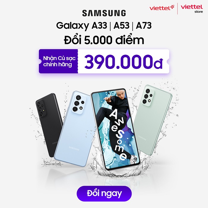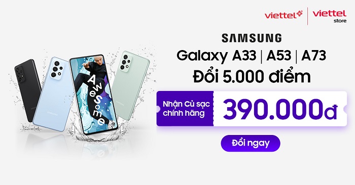 - Đổi 5000 điểm nhận Củ sạc chính hãng 390.000đ khi mua Samsung Galaxy A33 | A53 | A73