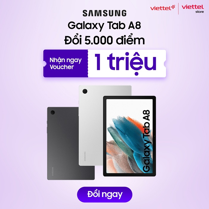 - Đổi 5.000 điểm nhận voucher 1.000.000đ mua Samsung Galaxy Tab A8