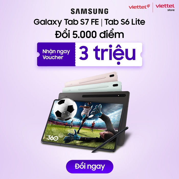 - Đổi 5.000 điểm nhận voucher 3.000.000đ mua Samsung Galaxy Tab S7 FE| Tab S6 lite