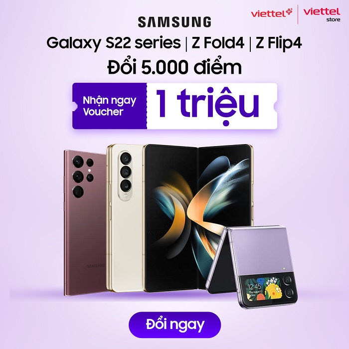 - Đổi 5000 điểm nhận voucher 1.000.000 đồng khi mua Samsung Galaxy S22 series| Z Fold4| Z Flip4