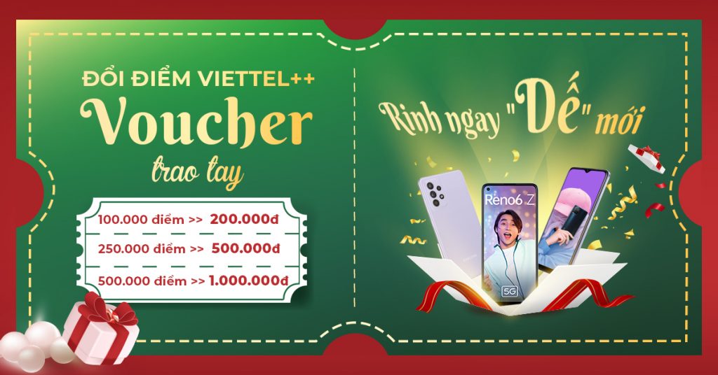 - Khách trả thẳng: Tặng PMH 100.000đ hoặc giảm ngay 200.000đ khi đổi 100.000 điểm Viettel++
