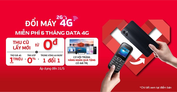 Tháng 9/2024, Việt Nam sẽ chính thức cắt sóng 2G nhằm khuyến khích người dùng nâng cấp lên các dòng điện thoại thông minh 3G/4G/5G. Do đó, điện thoại có tính năng 4G hiện đang rất được quan tâm. Nắm bắt được nhu cầu cũng như mong muốn người dùng có những trải nghiệm tốt nhất khi dùng máy chuyển đổi lên 4G, Viettel Store triển khai chương trình “Đổi máy 2G lên 4G – Miễn phí 6 tháng Data 4G” cùng nhiều ưu đã và phần quà tặng giá trị mừng sinh nhật 18 tuổi trong tháng 5 này!