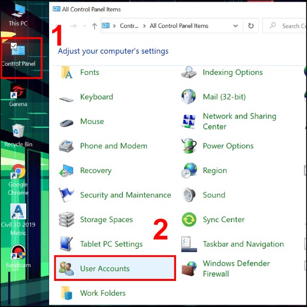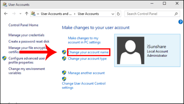 Cách đổi tên hiển thị trên máy tính Win 10 bằng Control Panel