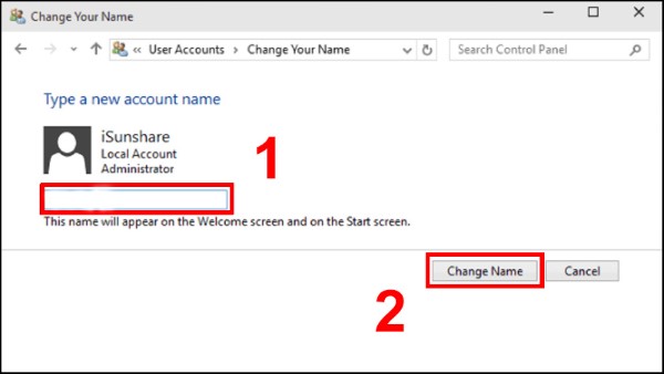 Bước 3: Nhập tên mới và nhấn Change Name.