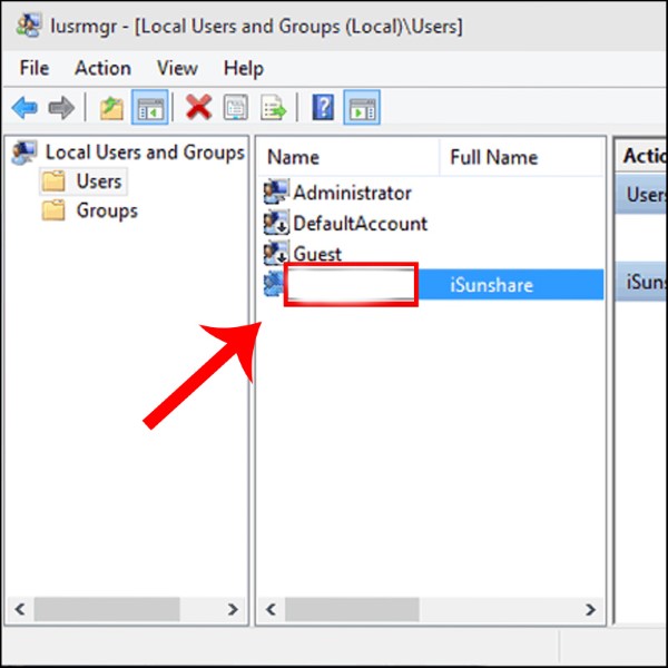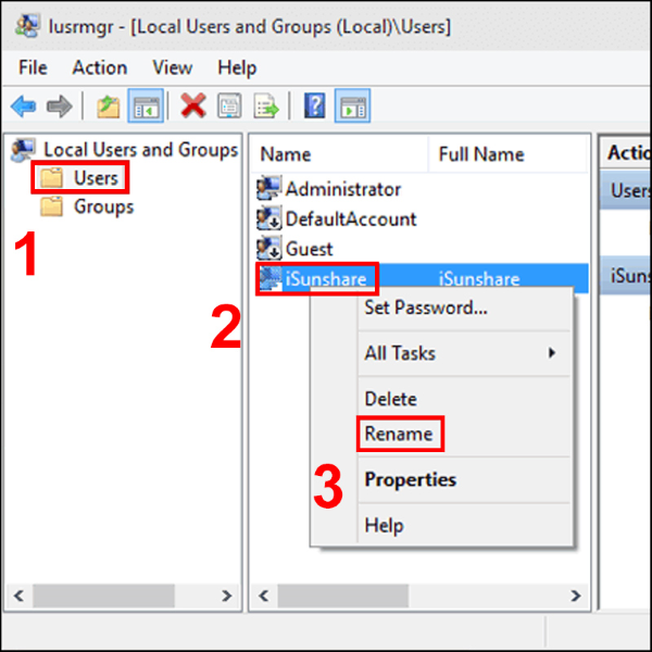 Bước 3: Chọn Users > Click chuột phải vào tài khoản muốn đổi tên > Chọn Rename.