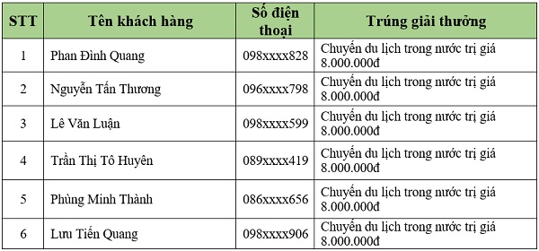 *Khi tham gia chương trình, các khách hàng trúng thưởng đồng thuận với việc BTC được quyền sử dụng tên và hình ảnh của mình với mục đích truyền thông hoặc quảng bá trên các phương tiện đại chúng mà không phải trả thêm bất kỳ khoản chi phí nào.