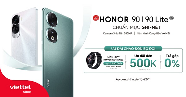 Song song đó, HONOR 90 Lite sẽ mở bán chính thức từ 10/11/2023 đến 22/11/2023 đi cùng chương trình Hot sale giảm ngay 500.000 VNĐ và trả góp 0% lãi suất, đưa giá bán lẻ từ 6.490.000 VNĐ về chỉ còn 5.990.000 VNĐ.