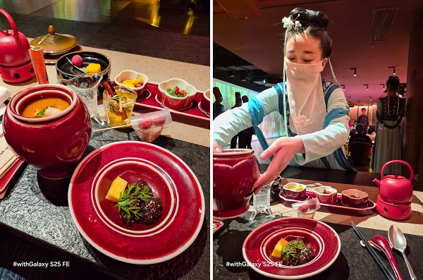 Đặc biệt khi đến Bắc Kinh không thể bỏ qua những yến tiệc cung đình. Mình đã chụp những bức ảnh tại không gian với rất nhiều màu sắc từ trang phục, thức ăn bằng Galaxy S25 FE. Kết quả thật ấn tượng!