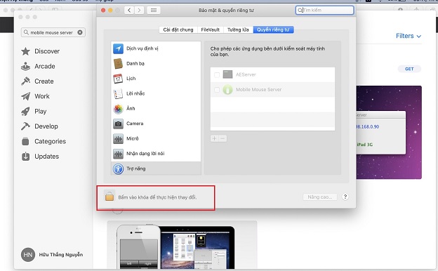 - Bước 3: Tại hộp thoại allow the apps below to control your computer, bạn cho phép ứng dụng hoạt động bằng cách tích vào ô có biểu tượng màu xanh.