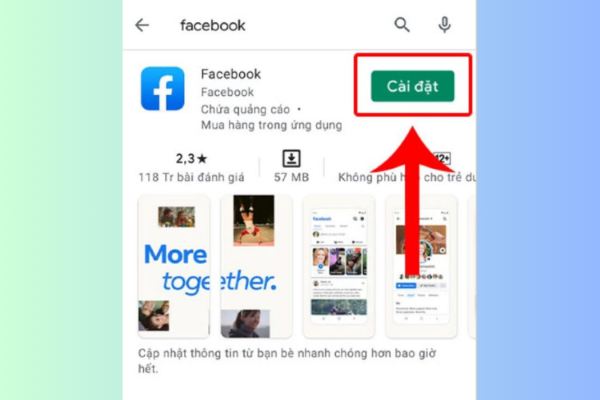 Bước 1: Trên Android: Mở CH Play > Tìm “Facebook” > Nhấn Cập nhật.