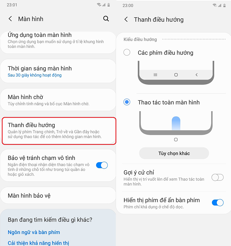 Tiêu biểu như tính năng ẩn đi các phím điều hướng thay thế bằng cử chỉ vuốt nhanh chóng.