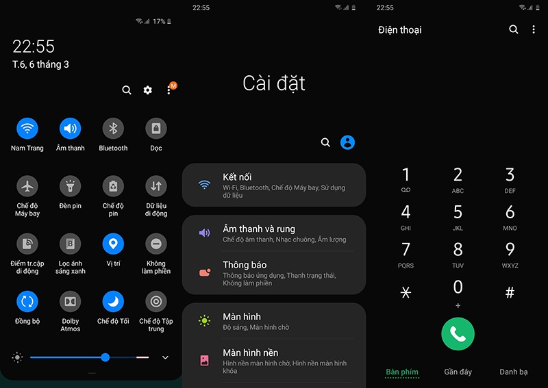 Tính năng Chế độ tối biến giao diện chuyển qua màu đen, giúp tiết kiệm pin và sử dụng ban đêm hiệu quả hơn.