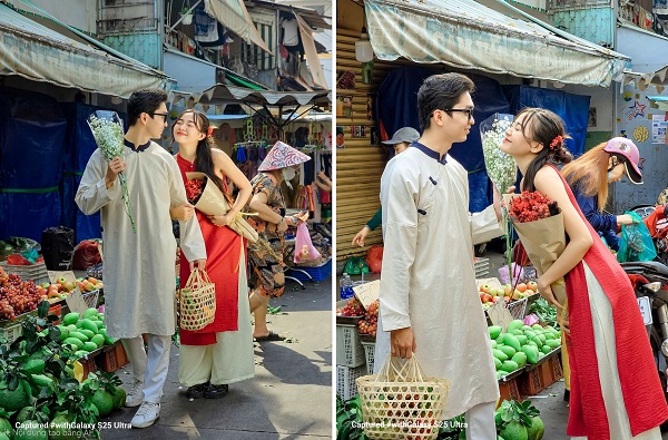 Chợ Tết không chỉ là nơi mua sắm mà còn là nét văn hóa truyền thống đậm chất Việt Nam. Hình ảnh chợ hoa nhộn nhịp với những gian hàng đầy màu sắc, người mua kẻ bán tấp nập. Galaxy S25 Ultra với chế độ góc rộng 1x độ phân giải 200MP chính là lựa chọn lý tưởng. Với khẩu độ f/1.7, camera này giúp bạn dễ dàng bắt trọn những khoảnh khắc ngày Tết. Cảm giác không gian rộng lớn và đầy sống động được thể hiện rõ nét, mang đến cảm giác bạn như đang sống trong chính khoảnh khắc ấy.