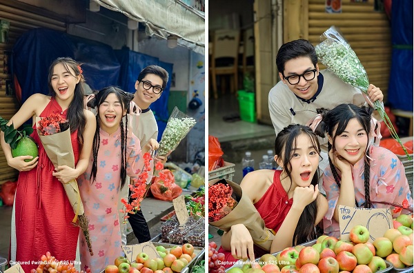 Giữa không khí chợ Tết, khoảnh khắc anh cả chọn những bó hoa tươi tắn, em út tỉ mỉ chọn từng trái bưởi mang đậm phong vị ngày xuân. Chế độ chân dung tele 3x phát huy thế mạnh giúp bạn chụp những bức ảnh chân dung vừa đẹp và vừa làm nổi bật các chi tiết quan trọng như ánh sáng da, bokeh mịn màng, tạo ra những bức ảnh tuyệt vời.