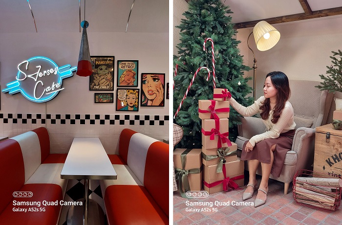 Những góc quán quen dịp Giáng sinh với những trang trí bắt mắt, hãy tận dụng chế độ Chân dung (Portrait) để có ngay những shot hình xoá mờ phông nền phía sau giúp nổi bật chủ thể, điểm tô những bokeh lung linh.