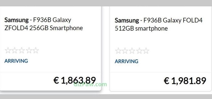 Giá bán Samsung Galaxy Z Fold4 tại thị trường Châu Âu được tiết lộ từ ảnh chụp màn hình của một nhà bán lẻ cho biết, phiên bản 256GB sẽ được bán với giá 1863.89 EUR (khoảng 44,3 triệu đồng) và phiên bản 512GB sẽ được bán với mức giá 1981.89 EUR (khoảng 47,1 triệu đồng).