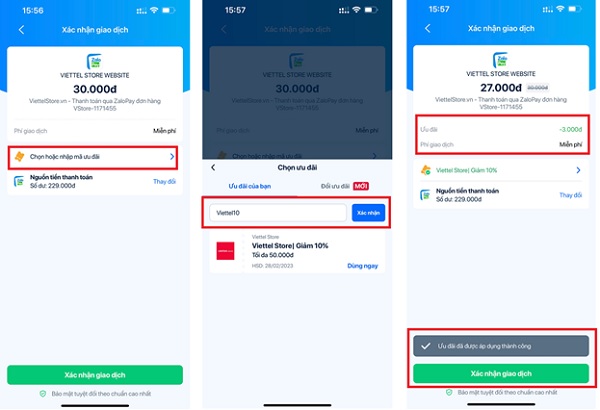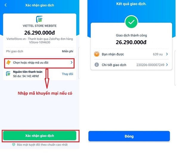 – Khách hàng nhập mã khuyến mại để được áp dụng CTKM từ Viettel Store: